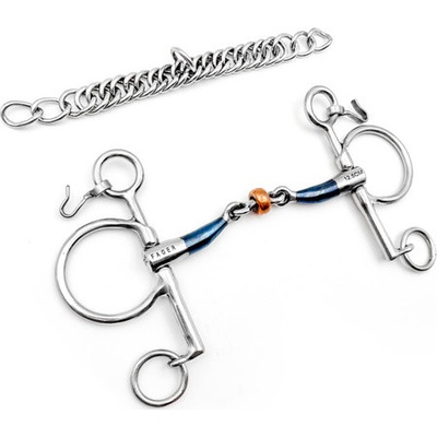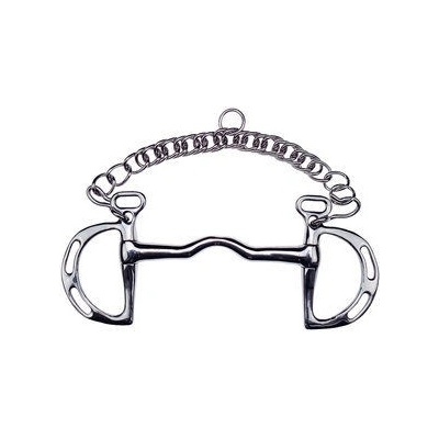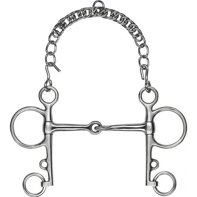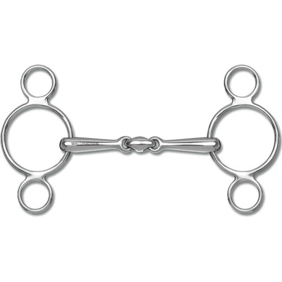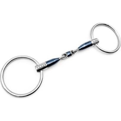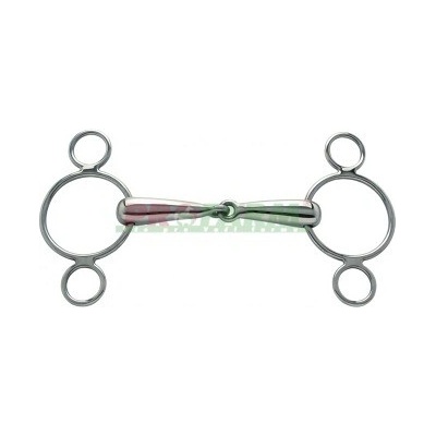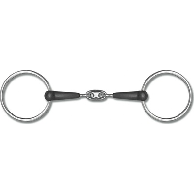 Dvakrát lomené stihlo s kroužky z nerezové oceli a udítkem z Argentanu. Argentan je odolná slitina mědi, která podporuje přežvykování a slinění. Díky tomu kůň při práci lépe...