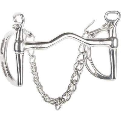 Popis Masivní baucher udidlo z nerezové oceli. Dvakrát lomené udidlo je ideální pro zvednutí koně při drezuře a jiném použití. Otěže se připevňují k větším kroužkům a...