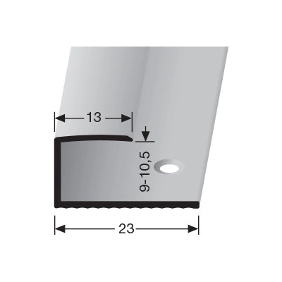 Hladký hliníkový ukončovací profil 9-10,5mm Ukončovací profil pro zasunutí podlahové krytiny o tloušťce do 9-10,5mm. Je určen k ochraně a k estetickému ukončení krytiny. -...