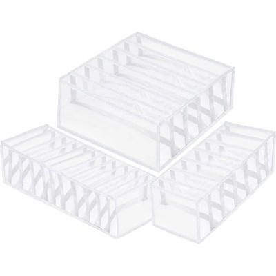 Výhodná sada 3ks nylonových organizérů obsahuje jeden větší a dva menší textilní boxy. Perfektní pro uložení podprsenek nebo jiných částí spodního prádla.
