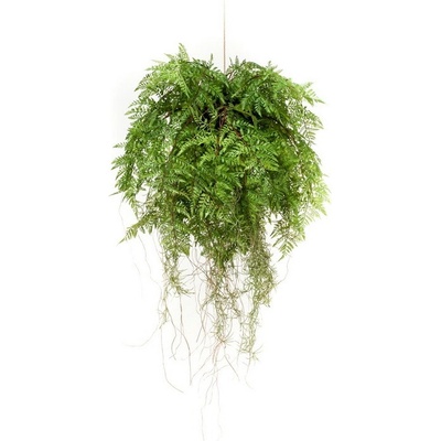 Umělé aranžmá květin kapradí se vzdušnými kořeny k zavěšení ve velikosti cca 55m. Kpradina s nádhernými listy je zasazen na závěsu, listy s přírodní strukturou. Stonky rostliny mají drátěnou konstrukci díky které lze rostlinu snadno naaranžovat do požadovaného tvaru....