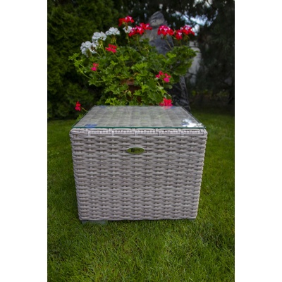 Rozměry: 43 x 40 x 38cm Barava ratanu latte. Stolek se skleněnou deskou.