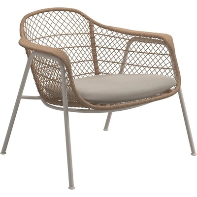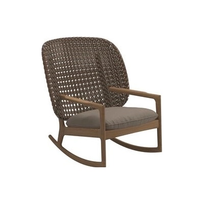 Zahradní nízké houpací křeslo s vysokou zádovou opěrkou Kay značky Gloster. Zahradní křeslo má leštěný teakový rám v kombinaci s výpletem z umělého ratanu. Sedák je z...