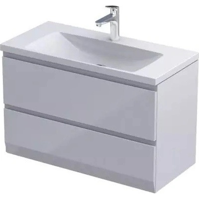Skříňka pod umyvadlo materiál skříňky: přední strana MDF, boční strany dřevotříska barva skříňky: lesklá bílá lakovaná vysokým leskem pomalé dovírání umístění pantů:...