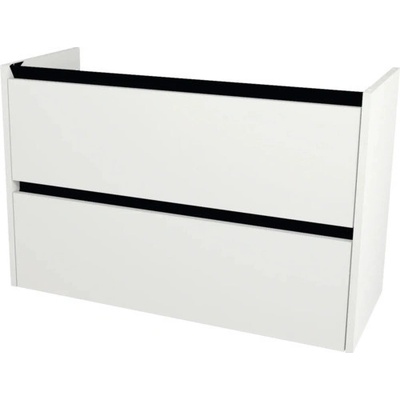 Skříňka pod dvojumyvadlo Mio-N 130 x 45 cm • korpus: bílý • čela zásuvek: bílý lesklý lak • bezúchytkový systém Push to Open • pojezdy zásuvek Hettich s brzdou a dojezdem •...