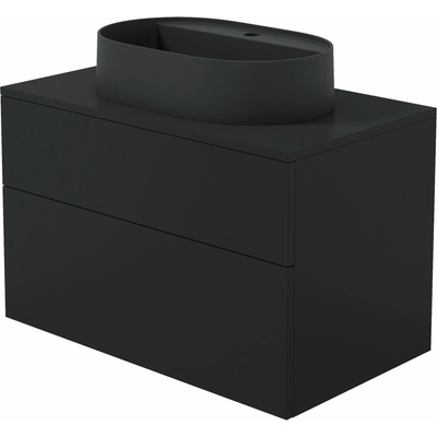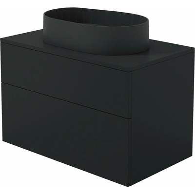 Koupelnová sestava kombinuje oválné granitové umyvadlo Silia v sytě černé barvě a skříňku Prizma s matným černým povrchem, čímž vytváří soudržnou a moderní kompozici. Tato...