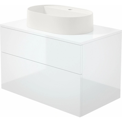 Umyvadlo se skříňkou, se 2 zásuvkami včetně místošetřícího sifonu 861967. Odkládací plocha.