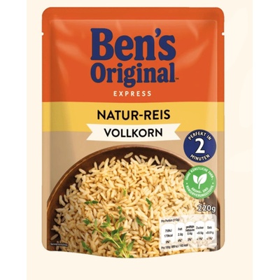 Uncle Ben's Express natur-reis vollkorn Připraveno za pouhé 2 minuty! Lahodná a lehká celozrnná rýže express natural se hodí téměř ke každému pokrmu a je perfektní...