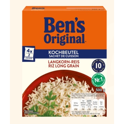 Ben's Original Basmati rýže 10 minut praktické vaření sáček 500gVychutnejte si rýži Basmati, voňavou rýži z Indie. MARS GmbH Eitzer Straße 215 D 27283 Verden...