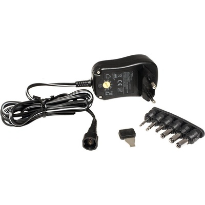 Pulsní stabilizovaný zdroj Solight 3 až 12V / 2,5 A s univerzální sadou DC konektorů. Sada výměnných DC konektorů - 2.35 x 0.7 mm - 3.5 x 1.35 mm - 4.0 x 1.7 mm - 5.0 x...