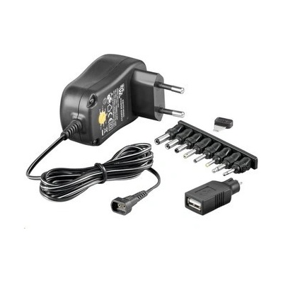 Univerzální napájecí adaptér 230V/3-12V - 3V-12V po krocích, stejnoměrných DC - možnosti nastavení na: 3/4.5/5/6/7.5/9/12 V DC výstupní napětí - max. 1500mA při 12V (18VA) -...