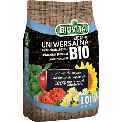 Univerzální zemina pro květiny BIOVITA 10 l Univerzální zemina BIOVITA je nenahraditelným substrátem pro výsadbu a přesazování okrasných rostlin v domech, zahradách, na...