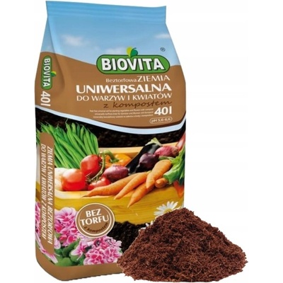 Univerzální zahradní zemina pro zeleniny a květiny 40 l Bez rašeliny s kompostem BIOVITA Univerzální bezrašelinová zemina je přírodní a ekologický substrát, který zajišťuje...