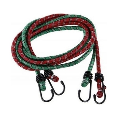 Elastické gumové popruhy, opletené polyesterem a zakončené oboustranně háky z ocelových poplastovaných drátů k uchycování zavazadel.