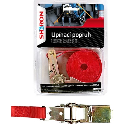 SHERON Upínací popruh s ráčnou je kvalitní popruh, určený k zabezpečení přepravovaného nákladu.