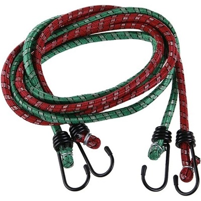 Elastické gumové popruhy, opletené polyesterem a zakončené oboustranně háky z ocelových poplastovaných drátů k uchycování zavazadel.
