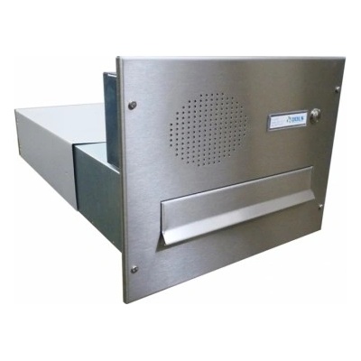 Poštovní schránka určená k zazdění do sloupku s elektro schránkou, osazenou zvonkovým tlačítkem a děrováním pro průchod hlasu ve dvířkách elektro schránky. Za děrováním ve...