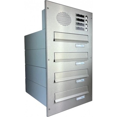 Sestava poštovních schránek z D-042 včetně elektro krabice, uchycená do odnímatelné čelní hliníkové desky, určená k zazdění do sloupku. V čelní desce integrovány vhozové...