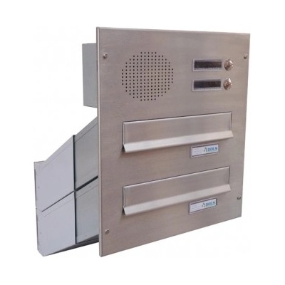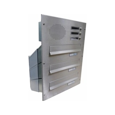 Sestava poštovních schránek včetně elektro krabice, uchycená do odnímatelné čelní nerez desky, určená k zazdění do sloupku. V čelní desce integrovány vhozové sklapky, plastové...