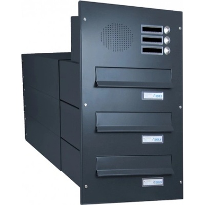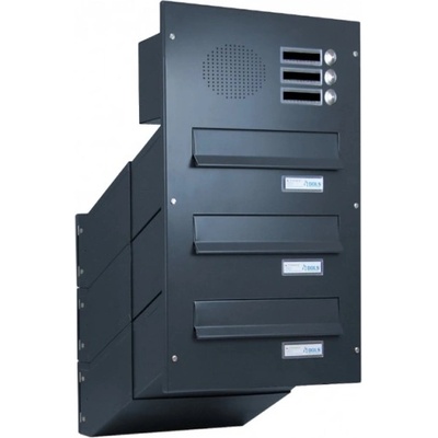 Sestava poštovních schránek z D-041 včetně elektro krabice, uchycená do odnímatelné čelní hliníkové desky, určená k zazdění do sloupku. V čelní desce integrovány vhozové...