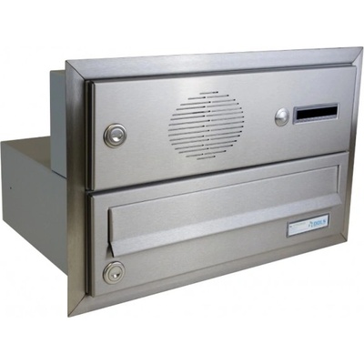 Poštovní schránka včetně elektro krabice, uchycená do odnímatelné čelní nerez desky, určená k zazdění do sloupku. V čelní desce integrována vhozová sklapka, 2x jmenovka se...