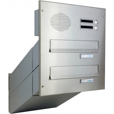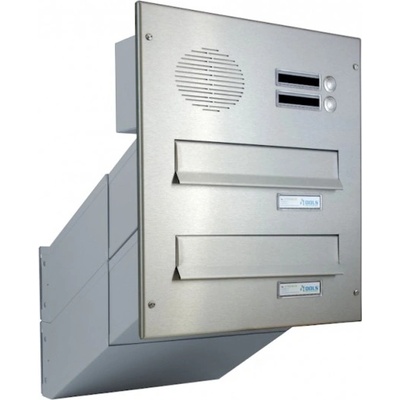 1x poštovní schránka D-241 k zazdění do sloupku + čelní deska s 2x zvonkem a HM URMET - NEREZ / šedá