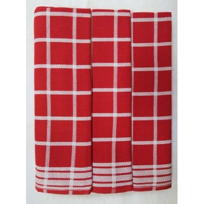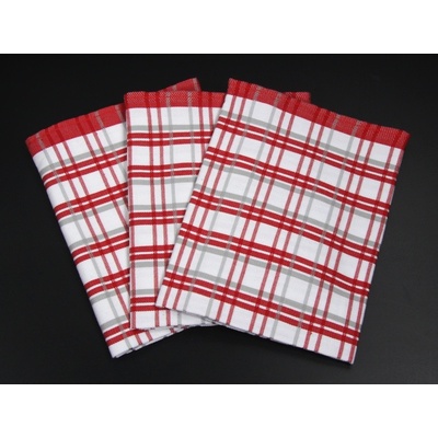 Souprava tří kusů kuchyňských utěrek z exkluzivní egyptské bavlny v rozměru 50x70cm v červeno bílé barvě se vzorem kára.