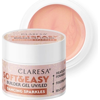 Růžový stavební UV/LED gel na nehty s třpytkami Claresa SOFT & EASY BUILDER GEL GLIMMER PINK, 90g Inovativní jednofázový samonivelační gel na úpravu nehtů s “tekutou pamětí“ -...