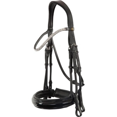 Vysoce kvalitní drezurní uzda vyrobena z měkké pravé italské kůže a kování z nerezové oceli, což ji činí velice odolnou. Má široký švédský nánosník, jednoduchou čelenku bez...