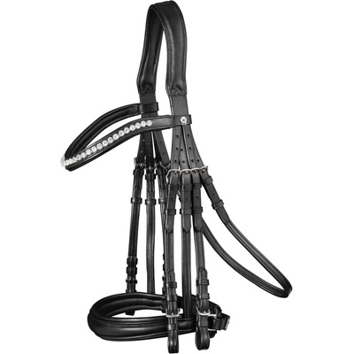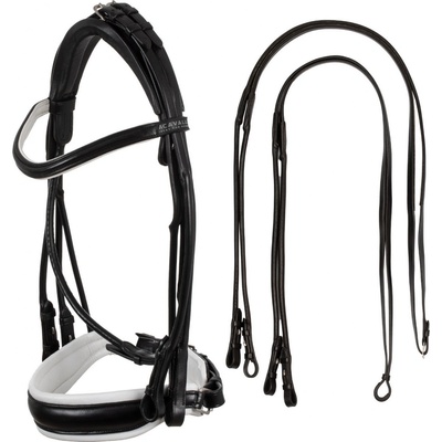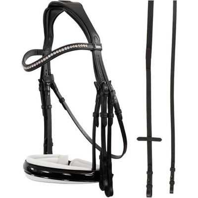 Vysoce kvalitní drezurní uzda vyrobena z kůže. Vybavena měkce polstrovaným nánosníkem a nátylníkem. Dodávána s dvěma koženými otěžemi. Dostupná ve velikostech COB, FULL a...