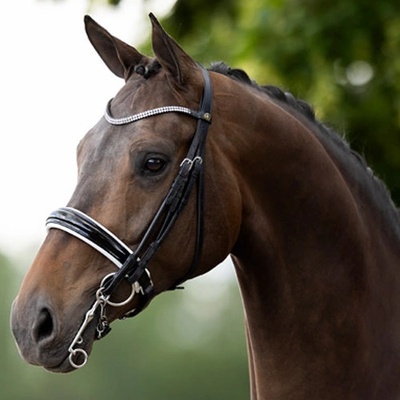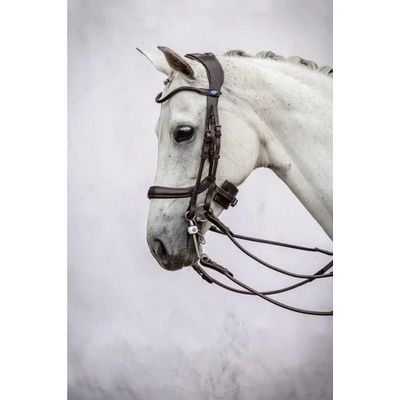 Dvojitá uzda s krásným designem vyrobená z nejlepší italské kůže. Anatomicky střižená a měkce polstrovaná na nánosníku a nátylníku pro optimální rozložení tlaku. Anglický...