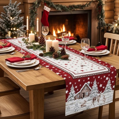 Sváteční běhoun s krásným motivem ozvláštní vaši jídelnu nebo kuchyň a přinese vám vánoční náladu. Navíc ochrání stůl před poškozením nebo znečištěním. Materiál zajistí snadnou...