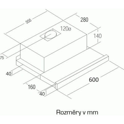 Výsuvná digestoř síře 60 cm • vrchní odtah • 3 stupně rychlosti odsávání • max. výkon odsávání: 392 m³/h • mechanické ovládání (tlačítkové) • LED osvětlení • běžná hlučnost: 71...