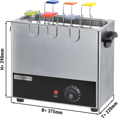 Materiál: Nerezová ocel 1 nádoba, objem nádoby: 4 litry Rozměry nádoby: Š 301 x H 152 x V 200 mm Držák na vejce: 6 samostatných držáků, barevně označených, Velikost vajec:...