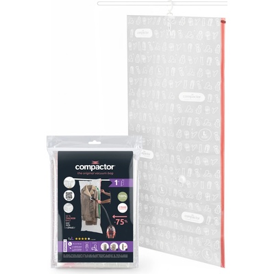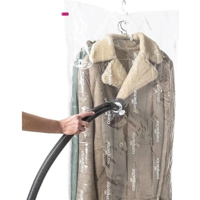 Sbohem, přeplněné skříně Závěsný vakuový obal na šaty Compactor Espace vám umožní získat až 75% úložného prostoru navíc a zároveň dokonale ochrání uložené oblečení před...