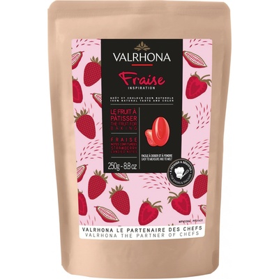 Valrhona INSPIRATION Strawberry (Fraise) je inovativní čokoládová poleva (couverture) vyrobená z mrazem sušených jahod a je přirozeně bezlaktózová. Má intenzivní chuť i barvu....