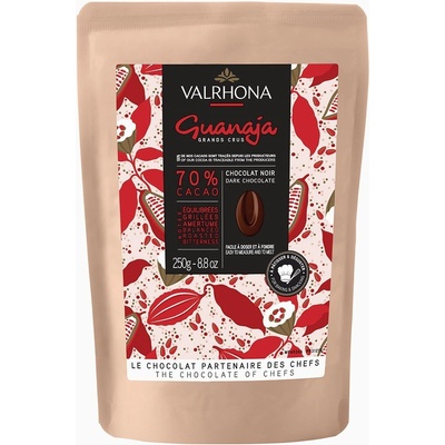 Hořká čokoláda Valrhona GUANAJA s obsahem kakaa 70 % intenzivní chuti, pro milovníky té pravé chuti kakaových bobů. Vyvážená, jemná, ale intenzivní chuť tmavé čokolády....