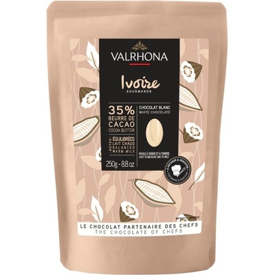 Valrhona Feves Bílá Mléčná Čokoláda Ivoire 35% 250g Bílá čokoláda, obsah kakaa 35%. Vyvážená bílá čokoláda s chutí horkého mléka a vanilkovými tóny. - Mléčná čokoláda s...