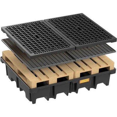 Polyethylenová záchytná vana pro 2x EURo paletu 120x80 cm vedle sebe nebo 4x sud 200 litrů s polyethylenovým roštem. Záchytná vana se dodává včetně roštu a paletu je možné...