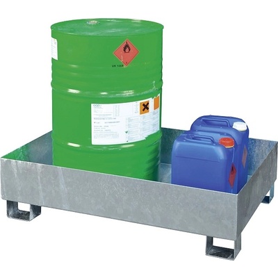 Záchytná vana z oceli typ SO2 bez roštu, pozinkovaná, zatížení 450 kg, objem 205 l, kapacita 1 sud á 200 l a malé nádoby Vnější rozměry: 120 x 80 x 35 cm