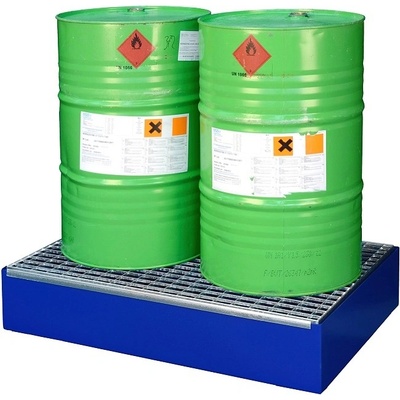 Ocelová lakovaná záchytná vana bez nožek, s ocelovým roštem o velikosti 120x80x25 cm (typ SW2). Záchytný objem vany je 210 litrů, nosnost 800 kg.