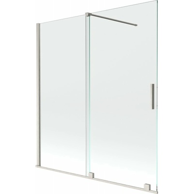 Technické údaje: Šířka: 150 cm Výška: 150 cm Typ: dvoukřídlý Montáž: Univerzální Typ: Pohyblivý/Posuvný Druh skla: Tvrzené Barva skla: Transparentní Tloušťka skla: 8 mm Povrchová úprava: Kartáčovaný nikl Povlak usnadňující čištění Vyrovnání nerovností stěny Sada...