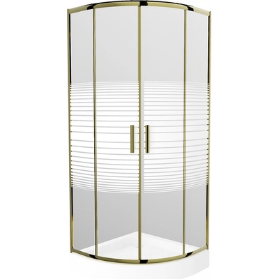 Technické údaje sprchového koutu: Rozměr: 90x90 cm Výška: 190 cm Poloměr zakřivení R55 Montáž: Univerzální Vstup: Posuvné dveře Barva skla: Bílé pruhy Povrchová úprava: Zlatá...