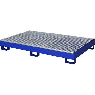 Záchytná vana pro zachycení nechtěných úkapů: - vhodná pro bezpečné uložení čtyř 200 litrových sudů - určená pro vnitřní použití ve skladech, halách a dílnách - vyrobená ze...