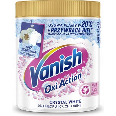 Vanish Oxi Action Ceystal bílý je velmi funkční odstraňovač skvrn. Aktivuje se již při nízké teplotě praní. Použít jej můžete na velké viditelné skvrny, ale také na malé...