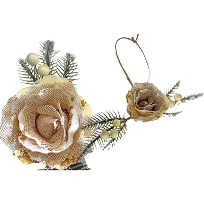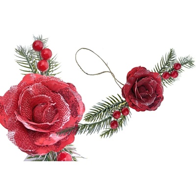 Elegantní dekorativní růže na jehličí s bobulemi je připravena k zavěšení na šňůrce nebo k použití při dekorování věnců, aranžmá či vánočních dekorací. Univerzální dekorace pro...