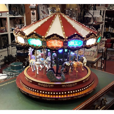 Doplňte svou vánoční vesničku Luville roztomilým animovaným kolotočem. Malý kolotoč má čtyři vozíky - sáně, auto, skútr a bílý kůň. Na špičce kolotoče svítí světýlka teplé bílé...