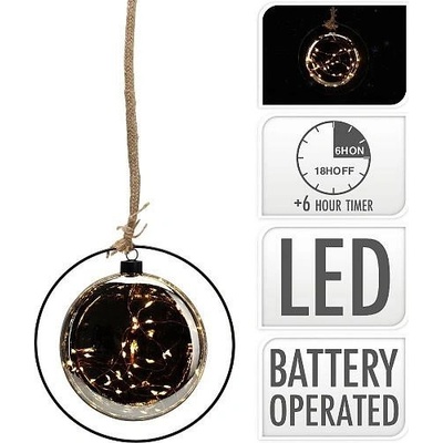Vánoční závěsná dekorace - svítící plochá koule o rozměru 18 x 5 cm - kovový černý okroužek kolem koule o průměru 25 cm - provázek na zavěšení o délce 80 cm - 40 mini LED...