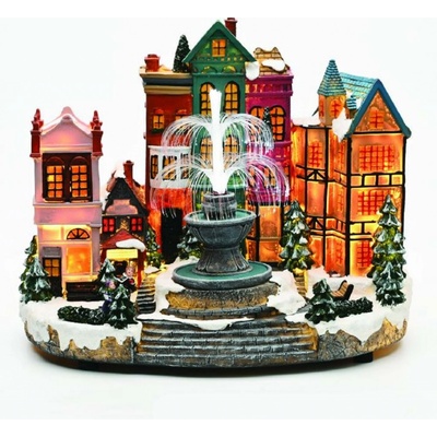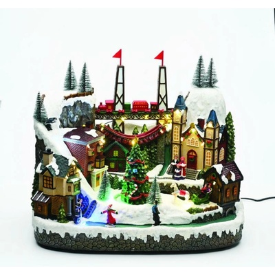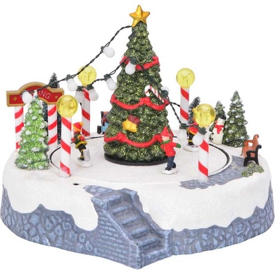 ACA Lighting Vánoční dekorace LED multibarevná vesnice s točícím se stromem s hudbou 230V nebo na baterie 3xAA 39x24,5x33cm X0353