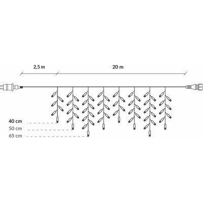 - Barva: vícebarevná + studený bílý záblesk - Délka osvětlené části cca 12 m - Délka kabelu: cca 2,5 m - Délka rampouchů: 0,4/0,5/0,6 m - Světla rampouchů 300 mikro LED diod -...